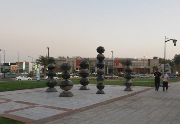 Maha Malluh’s sculpture Food for Thought 'Abraj' is produced from recreations of the aluminium pots that came from various flea markets around Saudi Arabia. These pots were used for cooking a special kind of rice in the Saudi Arabian Hejaz province. As Maha Malluh explains, "With food always comes other narratives, other stories, other histories, histories of travel, histories of adventure, histories of change, anecdotes and comic tales. All of which people discuss over food. These cooking pots therefore celebrate Arab history, the Arab tradition of hospitality, and they exist as a visual testimony of personal histories." Maha Malluh further explained that “In my works, I explore our materialistic culture and its relation to national and individual identities. I’m so proud that my work, Food for Thought ‘Abraj’, is the first sculpture made by a Saudi artist in my city of birth, Jeddah.”